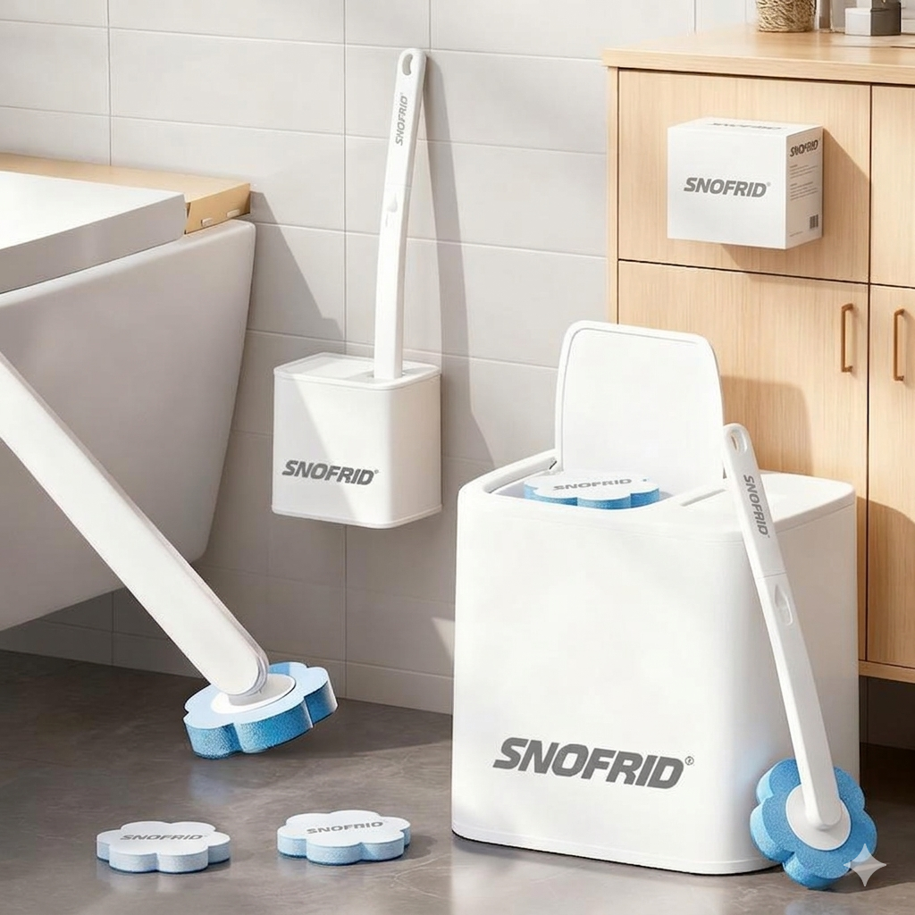 Snofrid is the UAE's first no-touch bathroom cleaning system. Each disposable sponge wand features a self-opening lid and built-in antibacterial solution—so you never have to touch dirt, grime, or bacteria again.